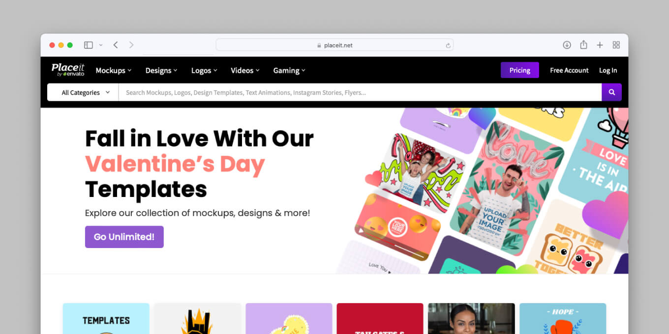 Creative Market is a place for designers to find fonts, website themes, iPhone mockups, and so on, and it’s a great place to buy packs of mockup templates. But note many of them are in PSD format. This is great if you have a Photoshop subscription, less so if not.