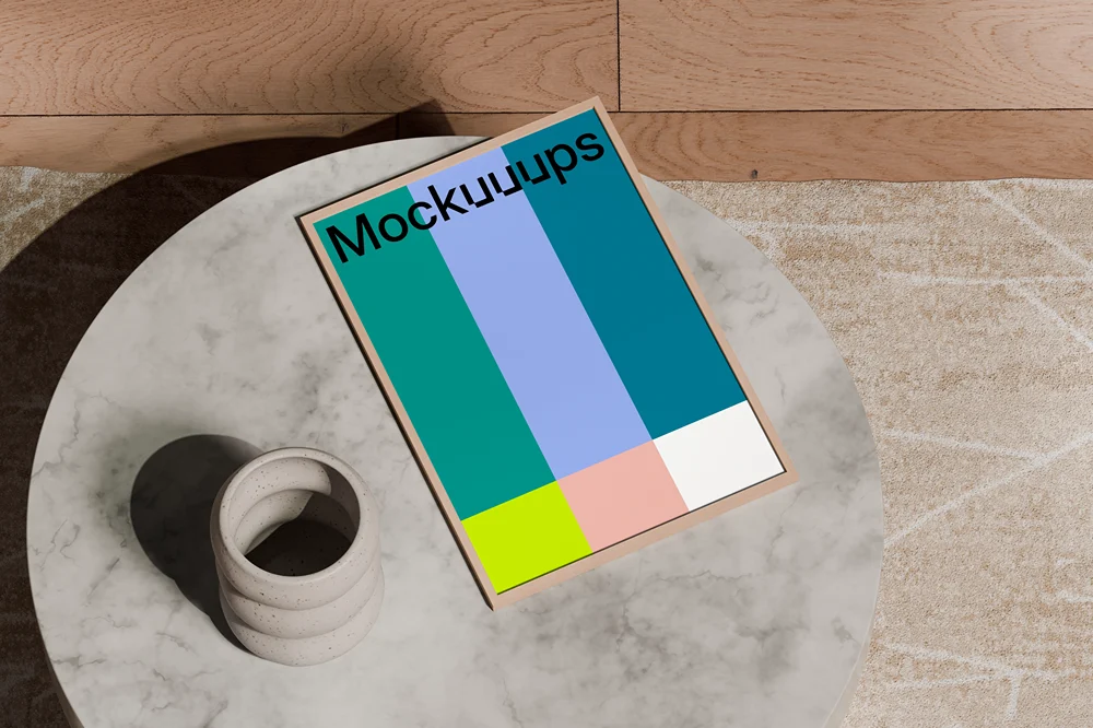 A3 poster mockup on a marble coffee table