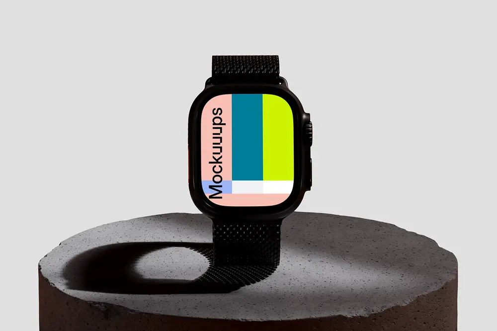 Apple Watch Ultra mockup on a concrete pedestal